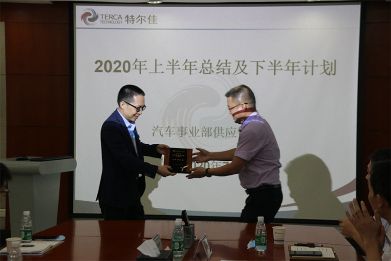 總經理蔣暉向汽車事業部頒發上半年先進事業部獎
