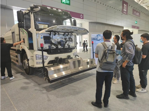 作為參展企業之一,大為弘德專注于新能源汽車領域,致力于新能源專用汽車及相關領域的研發、生產及銷售,在大會上輸出著“大為能量”。大為弘德積極響應國家政策,新能源環衛車是大為弘德重點布局的領域。在1182號展廳,登場的是大為弘德新一款18噸純電動清洗車,此款車型采用寧德時代標準化磷酸鐵鋰電池,配備電量246kWh,滿足客戶“一次充電,一天作業”的需求。此款電動清洗車還配置有高壓清洗系統和低壓清洗兩套系統,具有路面清洗、護欄隔離帶和人行道清洗、高壓噴槍、噴霧降塵、低壓沖洗、后灑水、電動40m高射炮等多種功能。特別適用于城市廣場、道路路面和路沿的高清潔度保潔作業,可以應對不同的道路清潔需求,應用場景多元化。不僅如此,全新設計的水泵驅動系統可以有效降低車輛作業能耗,提升整車續航能力。真正達到“綠色、高效、安全”,更契合本屆博覽會“新能源、新業態、新交通”的主題!
