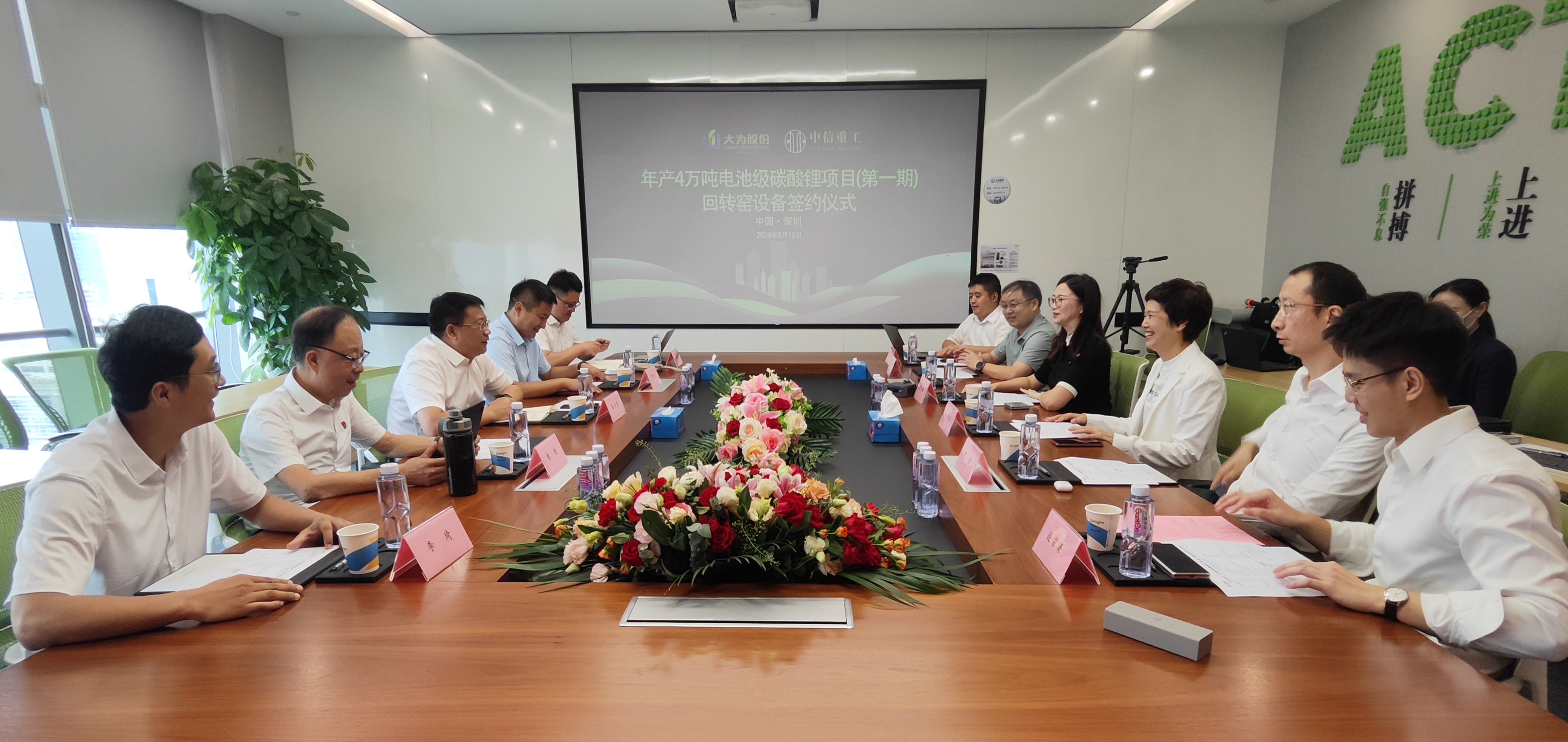 2024年8月15日,深圳市大為創新科技股份有限公司(以下簡稱“大為股份”、“公司”)年產4萬噸電池級碳酸鋰項目(第一期)首套回轉窯設備的簽約儀式在深圳順利舉行。